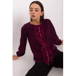 Elegantní blůza standardní délky vyrobena z kombinace polyesteru, viskózy a elastanu poskytuje pohodlí a bezchybný vzhled po celý den. Hladká látka zdůrazňuje rafinovaný charakter modelu, a vertikální volán na přední straně ozdobený drobnými korálky dodává jemný lesk a originalitu. Klasický kulatý výstřih a dlouhý rukáv udělují blůze univerzální, elegantní charakter. Bez zapínání je model pohodlný při oblékání. Ideální jak do práce, tak na elegantní setkání.