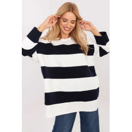 Blůza oversize s ležérním charakterem, ideální pro každodenní stylizace. Vyrobená z převládající směsi bavlny a elastanu, poskytuje pohodlí nošení a volnost pohybů. Model s delším střihem se skvěle hodí k legínám nebo úzkým kalhotám. Blůza má dlouhé rukávy a klasický kulatý výstřih a jejím dominujícím vzorem jsou nadčasové pruhy, které dodávají celku lehkost a svěžest. Chybějící zapínání zdůrazňuje uvolněný, pohodlný střih, který zapadá do každodenního, neformálního stylu.