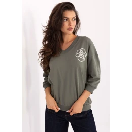 Halena s každodenním a neformálním charakterem, ideální jak do práce, tak do každodenního nošení. Vyrobena z prodyšné bavlny s přídavkem elastanu, poskytuje pohodlí a jemné přizpůsobení postavě. Hladký materiál v klasickém provedení je doplněn subtilním vyšívaným zdobením umístěným vpředu na úrovni prsou, co dodává celku elegantní, ženský akcent. Model s běžnou délkou a 3/4 rukávem, který zdůrazňuje volný, ale zároveň uklizený vzhled. Výstřih ve tvaru srdce zjemňuje krk a dodává lehkost stylizaci. Univerzální návrh, který se skvěle hodí do každodenních outfitů jak do kanceláře, tak do volnějších, nezávazných stylizací.