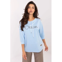 Blůza v každodenním stylu casual, ideální na každý den. Vyrobená z měkké bavlny s přídavkem elastanu, poskytuje pohodlí a volnost pohybu. Má standardní délku, 3/4 rukávy a kulatý výstřih s ozdobnými šňůrkami, které jí dodávají lehký, ženský charakter. Přední část zdobí decentní vyšívané květy, a dole na levé straně je stylová nášivka zdůrazňující moderní design. Jedná se o univerzální model, který se skvěle hodí jak do práce, tak do každodenních outfitů.