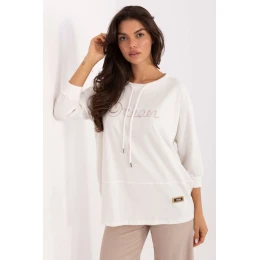 Blůza každodenního stylu casual, ideální na každý den. Vyrobená z měkké bavlny s přídavkem elastanu, poskytuje pohodlí a volnost pohybu. Má standardní délku, rukáv 3/4 a kulatý výstřih s ozdobnými šňůrkami, které jí dodávají lehký, ženský charakter. Přední část zdobí decentní vyšívanie a dole na levé straně je stylová nášivka podtrhující moderní design. Jedná se o univerzální model, který se skvěle hodí jak do práce, tak do každodenních outfitů.