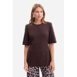 Halena vyrobena z hladkého úpletu o gramáži 260 g s podložkou v smyčce, spojující pohodlí nošení s elegantním vzhledem. Model bez kapes a podšívky, zapínán vzadu na skrytý zip, co zajišťuje pohodlí a estetické provedení. Klasický kulatý výstřih pod krkem dodává blůze univerzální charakter, a rukávy dlouhé po loket ve střihu přímočarého tvaru ji činí ideální na různé příležitosti. Baskinka jemně rozšířená k dolů přidává ženský šarm, zdůrazňující pas a modelující postavu. Střih lehce talířovaný, s přiléhavým vrškem a jemně rozklošeným spodkem, dělá z blůzy krásný kousek jak do elegantních, tak do každodenních stylizací. Délka po boky ji dělá pohodlnou a snadno kombinovatelnou s různými kousky šatníku. Navržena a ušita v Polsku z úpletu vyrobeného v Lodži, záruka kvality a pečlivosti o každý detail.