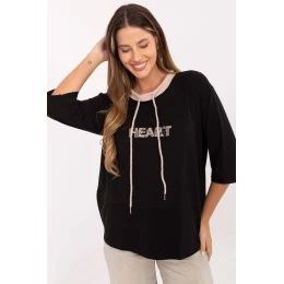 Casuální dámská blůza s vyšívaným motivem vpředu a šňůrkami na výstřihu je stylovým návrhem na každodenní příležitosti. Vyrobená z měkké bavlny s přídavkem elastanu zajistí pohodlí a volnost pohybu po celý den. Model se standardní délkou rukávu 3/4 a klasickým kulatým výstřihem kombinuje jednoduchost s módním detailom a skvěle se hodí do každodenních, ležérních stylizací, jak s kalhotami, tak s sukní.