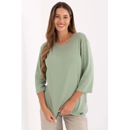Každodenní dámský volný top s hladkým vzorem je univerzální volbou pro každodenní outfit. Vyrobený z příjemného na dotek materiálu, poskytuje pohodlí po celý den. Model s standardní délkou, s 3/4 rukávem a klasickým kulatým výstřihem spojuje jednoduchost s pohodlím, a proto se skvěle hodí do volnočasových kombinací jak s kalhotami, tak s sukní.