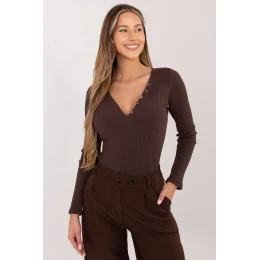 Stylový a pohodlný top s ležérním charakterem, ideální jak do práce, tak na každý den. Vyrobený z bavlny s přídavkem elastanu, zajistí pohodlí nošení, pružnost a dokonalé přizpůsobení postavě. Materiál je proužkovaný, co dodává topu jemnou strukturu a zdůrazňuje jeho moderní vzhled. Top má standardní délku a dlouhé rukávy, díky čemuž se hodí do mnoha stylizací, i do chladnějších dnů. Výstřih v podobě krku do V je zdoben dekorativními knoflíky, které dodávají celku elegantní, ženský akcent. Dominantní vzor je hladký, co činí top univerzálním a snadno kombinovatelným s ostatními kousky šatníku. Ideální základ pro mnoho každodenních stylizací pohodlný, ženský a univerzální.