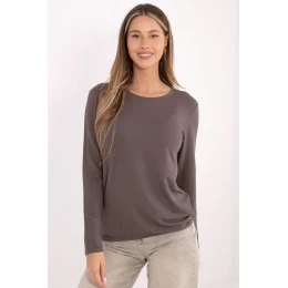 Každodenní volný top v casual stylu je pohodlný a univerzální model, který skvěle padne do každodenních outfitů. Vyrobený z příjemného na dotek, prodyšného mikromodálu a elastanu, poskytuje měkkost, pružnost a ideální přizpůsobení se postavě. Top má standardní délku, dlouhý rukáv a kulatý výstřih, což mu dodává klasický, nadčasový charakter. Hladký materiál podtrhuje minimalistický styl, díky čemuž se model skvěle hodí k džínům, sukním nebo látkovým kalhotám. Další výhodou je elastický lem, který jemně zdůrazňuje linii boků a zajišťuje, že top skvěle sedí, nezkroutí se a zůstává na svém místě po celý den. Model nemá zapínání, pohodlně se obléká přes hlavu. Ideální volba na každý den, spojující jednoduchost s výjimečným pohodlím nošení.