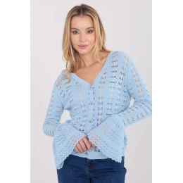 Stylový dámský svetr v boho stylu, ideální pro každodenní stylizace. Model se vyznačuje efektním ažurovým vzorem, který dodává celku lehkost, jemnost a moderní, umělecký charakter. Svetr je vyroben z kombinace polyesteru a viskózy, díky čemuž je měkký, příjemný na dotek a pohodlný na nošení. Standardní délka z něj činí univerzální střih, který lze snadno sladit s různými kousky šatníku. Dlouhé zvonové rukávy podtrhují boho atmosféru a přidávají celku uvolněnou eleganci. Model má srdíčkový výstřih, který opticky zeštíhlí postavu, a zapínání na knoflíky, umožňující nosit svetr jak rozepnutý, tak zapnutý. Je to skvělá volba pro ženy, které ocení pohodlí, přirozený styl a originální detaily v každodenních outfitech.