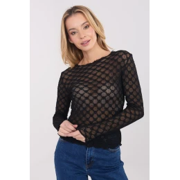 Elegantní, přizpůsobená krajková blůza bez podšívky je výjimečným návrhem pro ženy, které si cení stylu a jemné smyslnosti. Vyrobena z jemného materiálu na bázi polyamidu s přídavkem elastanu, krásně padne na postavě a zajišťuje pohodlí při nošení. Různorodá struktura krajky dodává celku rafinovaný, efektní charakter. Model s krátkou délkou a dlouhým rukávem a dekoltem typu lodník jemně zdůrazňuje linii ramen a krku. Jelikož nemá zapínání, je blůza pohodlná a snadno se obléká. Skvěle se hodí na společenské události, večírky, ale i jako elegantní prvek každodenního outfitu, ať už s klasickými kalhotami nebo sukní.