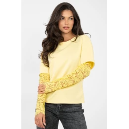 Každodenní dámská blůzka s casual charakterem spojuje jednoduchost s jemným, ženským akcentem. Vyrobená z vysoké kvality směsi bavlny a elastanu je příjemná na dotek, prodyšná a elastická, poskytující pohodlí po celý den. Hladký materiál podtrhuje univerzální styl blůzky, díky čemuž se skvěle hodí do každodenních stylizací. Model má standardní délku a kulatý výstřih, který dodává klasickou eleganci. Rukávy 3/4 vyrobené z jemné krajky přináší subtilní, efektní detail, který blůzku vyzdvihuje mezi klasickými návrhy. Je to ideální volba na každý den pro ženy, které ocení pohodlí spojené s ženským zakončením.