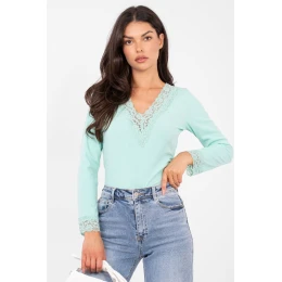Přizpůsobený každodenní top je ideální volbou pro ženy, které ocení pohodlí spojené s jemnou elegancí. Model v casual stylu se skvěle hodí jak do každodenního života, tak do práce, vytvářejíc estetické a ženské outfit. Hladký vzor a proužkovaná struktura materiálu dodávají topu moderní a zároveň univerzální charakter. Top je vyroben z elastické a příjemné směsi polyesteru a elastanu, co zajišťuje pohodlí a dobře padnoucí střih. Standardní délka zaručuje, že se model skvěle hodí k různým kalhotám a sukním. Stylovým doplňkem jsou dlouhé rukávy zakončené jemnou krajkou a srdíčkový výstřih lemovaný krajkou, které celkově dodávají topu ženský půvab a lehkost. Absence zapínání zdůrazňuje jednoduchost střihu a pohodlí nošení. Jedná se o top, který spojuje každodenní pohodlí s elegantními detaily, ideální pro mnoho outfitů.
