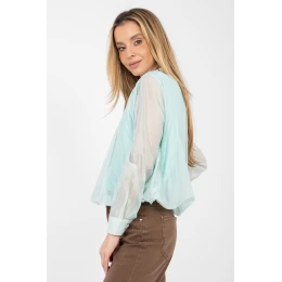 Elegantní dámská halenka je skvělou volbou jak na běžné nošení, tak do práce nebo na slavnostní příležitosti. Vyrobená z vysoce kvalitního materiálu kombinujícího tencel a polyester, poskytuje pohodlí, prodyšnost a estetický vzhled po celý den. Model s standardní délkou, dlouhým rukávem a klasickým límečkem vypadá mimořádně stylově a nadčasově. Halenka nemá zapínání, co jí dodává minimalistický charakter a usnadňuje oblékání. Hladký vzor podtrhuje eleganci střihu a ozdobné knoflíky jsou decentním, dekorativním doplňkem. Dalším benefitem je podšívka v centrální části, která zvyšuje pohodlí a estetiku nošení. Ideální k kombinaci s elegantními kalhotami, sukní nebo sako.