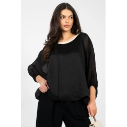 Elegantní blůzka standardní délky, ideální do práce i na formální události, kombinující stylový vzhled s pohodlím nošení. Model vyrobený z kombinace tencelu a polyesteru poskytuje příjemnou měkkost a odolnost materiálu. Blůzka má klasický kulatý výstřih a rukávy 3/4, hladký vzor jí dodává univerzální charakter. Další výhodou je podšívka v centrální části, která jemně modeluje postavu a zajišťuje elegantní usazení pod oblečením. Ideální jak pro kancelářské outfitování, tak i při formálních událostech.