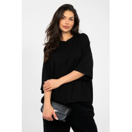 Košile s volnějším střihem je ideální nabídkou pro každodenní nošení pro ženy, které oceňují pohodlí a nadčasovou jednoduchost. Vyrobena z materiálu typu viskóza, který je neuvěřitelně měkký, jemný a velmi příjemný na dotek. Dominantní viskóza zajišťuje, že tkanina je prodyšná, lehká a krásně se skládá na postavě. Model s standardní délkou a krátkým rukávem poskytuje volnost pohybu a pohodlí po celý den. Klasický, kulatý výstřih zdůrazňuje univerzální charakter košile a absenci zapínání dále zvyšuje pohodlí při nošení. Hladký vzor ji činí skvělým základem pro mnoho stylizací a bude se skvěle hodit jak k džínům, kraťasům, tak k sukní. Jedná se o must-have kousek v každodenní garderobě, který spojuje minimalismus, funkčnost a jedinečné pohodlí.
