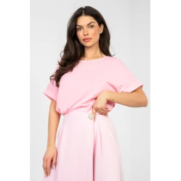 Klasická základní blůza ve stylu oversized je must-have v každém šatníku. Volný střih poskytuje volnost pohybu a pohodlí po celý den, standardní délka zase zajišťuje, že se skvěle hodí jak do kalhot, tak i jako volně nošená. Model má krátký rukáv a klasický kulatý výstřih, co mu dodává univerzální a nadčasový charakter. Hladký vzor zdůrazňuje minimalistický styl a usnadňuje tvorbu mnoha outfitů od sportovních po ženské, s doplňkem saka nebo šperků. Blůza je vyrobena z vysoce kvalitní bavlny s přídavkem elastanu. Přírodní materiál zajišťuje prodyšnost a pohodlí, zatímco elastan jemně kopíruje postavu, zvyšujíc pohodlí nošení. Ideální základ pro pohodlné, univerzální a vždy módní denní outfity.