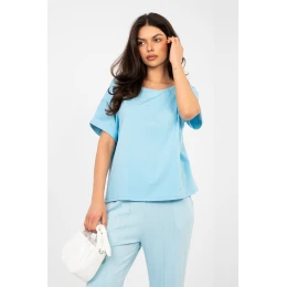 Klasická základní blůza s oversized střihem je must-have v každém šatníku. Volný střih zajišťuje volnost pohybu a pohodlí po celý den, standardní délka blůzy umožňuje skvělé nošení jak zasunuté do kalhot, tak i nenošené venku. Model má krátký rukáv a klasický kulatý výstřih, co mu dodává univerzální, nadčasový charakter. Hladký vzor podtrhuje minimalistický styl a usnadňuje vytváření mnoha stylizací od sportovních po více ženské, s doplňkem saka nebo šperků. Blůza je vyrobena z vysoce kvalitní bavlny s přídavkem elastanu. Přírodní materiál zajišťuje prodyšnost a pohodlí, zatímco elastan jemně přiléhá k postavě, zvyšuje pohodlí nošení. Ideální základ pro pohodlné, univerzální a vždy módní každodenní stylizace.
