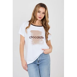 Elegantní a pohodlný každodenní top v ležérním provedení, ideální na každý den. Model má klasický, kulatý výstřih s kontrastním lemem, který dodává jemný charakter a zdůrazňuje detaily oblečení. Top je zdoben vyšívaným nápisem s flitry na přední straně, což je efektní akcent a dominující vzor celého modelu. Krátký rukáv a standardní délka zajišťují pohodlí při nošení a volný, každodenní střih zapadá do ležérního stylu. Vyroben z vysoce kvalitní bavlny s přídavkem elastanu, díky čemuž je měkký, příjemný na dotek a lehce pružný, poskytující pohodlí po celý den. Model nemá zapínání, co zdůrazňuje jednoduchost a funkčnost designu.