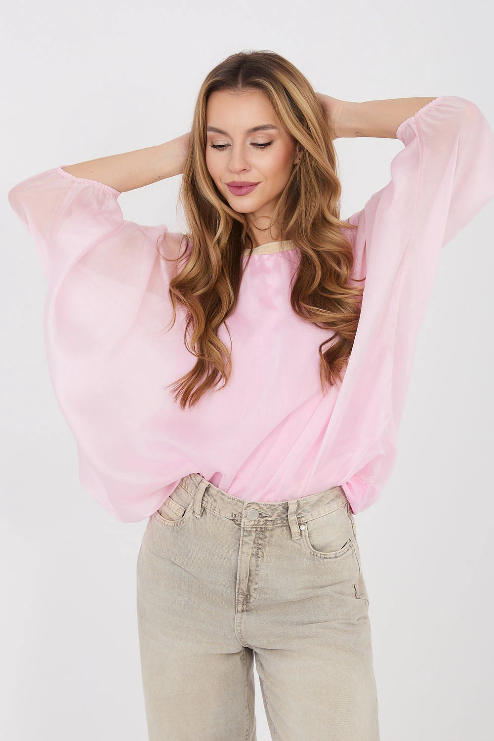 Elegantní blůza standardní délky, ideální do práce a na formální příležitosti, kombinující stylový vzhled s pohodlím nošení. Model vyrobený z kombinace tencelu a polyesteru zajistí příjemnou měkkost a odolnost materiálu. Blůza má klasický, kulatý výstřih a rukávy 3/4, hladký vzor jí dodává univerzální charakter. Další výhodou je podšívka v centrální části, která jemně tvaruje postavu a zajišťuje elegantní umístění pod oblečením. Ideální jak do kanceláře, tak i na formální události.