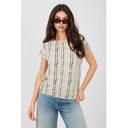 Stylová každodenní blůzka je ideální volbou pro ženy, které ocení pohodlí a módní vzhled v každodenních stylizacích. Díky univerzálnímu střihu se skvěle hodí jak k džínům, kraťasům, tak i sukním. Model je vyroben z příjemné viskózy, která je lehká, prodyšná a pohodlná na nošení i v teplejších dnech. Blůzka má kulatý výstřih a krátké rukávy, co jí dodává volný, ležérní charakter. Na látku je potisk, který tvoří hlavní ozdobný prvek a dodává celku módního vzhledu. Blůzka má standardní délku, díky čemuž se dobře přizpůsobuje postavě a lze ji snadno sladit s různými kousky oblečení. Model se obléká přes hlavu bez zapínání, což zvyšuje pohodlí při nošení. Jedná se o praktický a stylový návrh na každý den, ideální do mnoha každodenních stylizací.