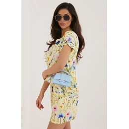 Elegantní dámská halenka s každodenním charakterem je ideální volbou pro ženy, které ocení pohodlí a módní vzhled. Vyrobená z lehké, prodyšné viskózy, se skvěle osvědčí v teplejších dnech, poskytující pohodlné nošení po celý den. Model s standardní délkou a krátkým rukávem zaručuje volnost pohybu a univerzální přizpůsobení různým postavám. Kulatý výstřih dodává celku klasický a nadčasový charakter, díky čemuž se halenka skvěle hodí do každodenních stylizací. Květinové vzory na materiálu dodávají halence zvláštní kouzlo, oživují vzhled a dodávají lehkost. Je to skvělá volba pro ty, kteří rádi do svého šatníku začleňují jemné, ale výrazné prvky. Halenka nemá zapínání, což zvyšuje pohodlí při nošení. Ideální na každý den, skvěle se kombinuje jak s džíny, tak s sukní nebo kraťasy, vytvářející stylové a pohodlné sestavy.