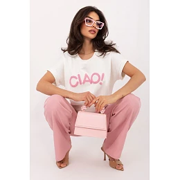 Každodenní blůzka s univerzálním charakterem, která se skvěle hodí do mnoha stylizací. Model se vyznačuje kontrastním nápisem vpředu, který dodává celku moderní a uvolněný styl. Vyrobená z příjemné směsi viskózy a elastanu, poskytuje pohodlí a jemné přizpůsobení postavě. Standardní délka a krátký rukáv z ní dělají ideální blůzku na teplejší dny nebo jako základ pod další kusy oblečení. Má klasický kulatý výstřih a není na ní žádné zapínání, což zdůrazňuje její pohodlný, ležérní charakter.