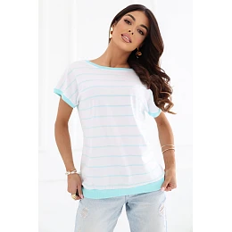 Košile s každodenním charakterem je stylový a pohodlný návrh vhodný jak do práce, tak na každý den. Vyrobena z vysoké kvality směsi bavlny a elastanu, poskytuje pohodlí nošení, prodyšnost a lehkou pružnost, díky čemuž dobře sedí na postavě. Model zdobí nadčasový pruhovaný vzor, který dodává celku klasický, ale zároveň moderní vzhled. Standardní délka z ní dělá skvělou kombinaci s různými kusy oblečení, od kalhot po sukně. Krátký rukáv a kulatý výstřih vpředu zdůrazňují její univerzální charakter. Zadní část přitahuje pozornost díky efektnímu výstřihu ve tvaru písmene V a ozdobné mašli, které dodávají celku ženský šarm a originalitu. Absence zapínání dělá z košile pohodlný a snadný kousek na oblékání. Jedná se o skvělou volbu pro ženy, které si cení spojení klasiky s jemnými dekorativními detaily.