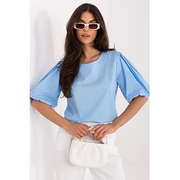 Blůza elegantního a univerzálního charakteru je stylovým návrhem ideálním na každý den, do práce a na formální příležitosti. Její hladký vzor zdůrazňuje minimalistický a nadčasový design, který lze snadno sladit s různými kousky oblečení. Model standardní délky s krátkým nadýchaným rukávem dodává postavě lehkost a jemně zdůrazňuje ženský charakter stylizace. Kulatý výstřih dodává celku klasickou eleganci a zapínání na jedno tlačítko na krku představuje jemný, estetický detail. Vyrobena z vysoce kvalitní směsi bavlny a elastanu, blůza je příjemná na dotek, prodyšná a jemně elastická, což zajišťuje pohodlí během celého dne a dobře se přizpůsobuje postavě. Jedná se o elegantní a zároveň pohodlný kousek oblečení, který se hodí jak do kancelářských, tak do formálních stylizací.