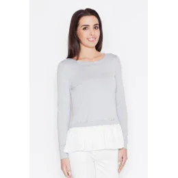 Jednoduchá halenka s dlouhým rukávem s našitým dekorativním volánem na dně.