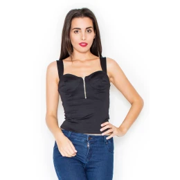 Top a la korzet na širokých pásků, zakřivený misku s krátkým předním zipem. Velmi sexy problém, dobře prezentovány budou oba těsně přiléhající sukně a džíny. Tento model je k dispozici ve třech barevných provedeních.