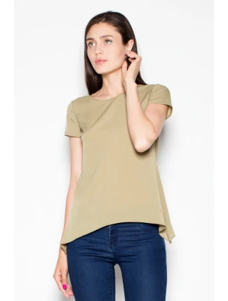 Jednoduchá halenka s prodlouženými boky. Vyrobeno z lehkého a vzdušného materiálu. Ideálně se hodí k těsným kalhotám.