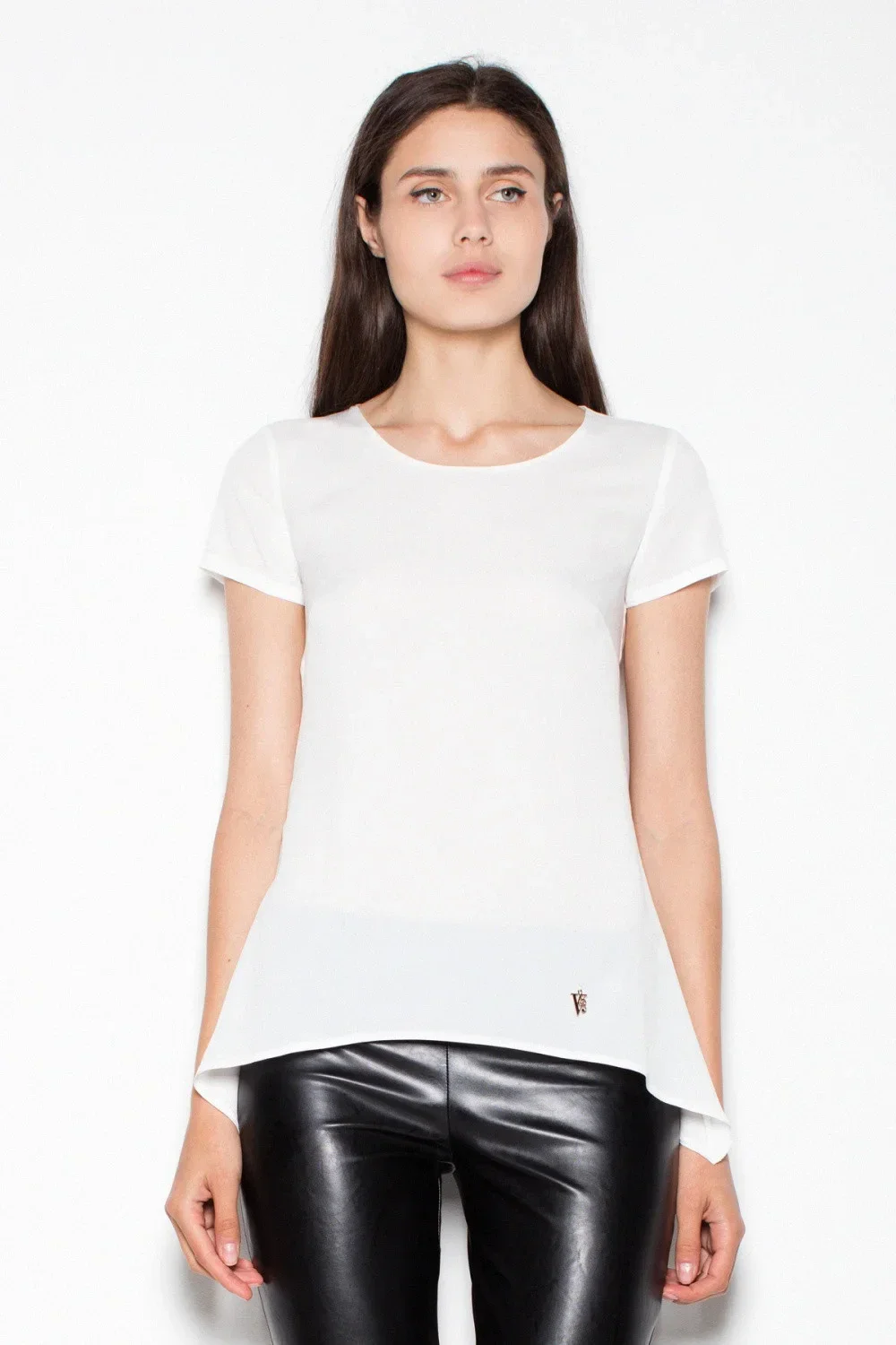 Jednoduchá halenka s prodlouženými boky. Vyrobeno z lehkého a vzdušného materiálu. Ideálně se hodí k těsným kalhotám.