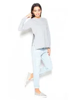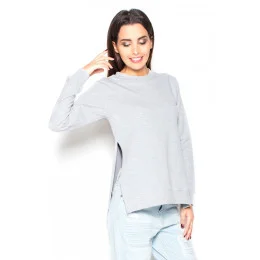 Šedá bavlněná halenka s dlouhými rukávy a bočními rozparky.