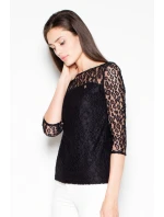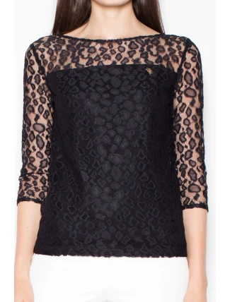 Elegantní halenka s 3/4 rukávy a průhledným horním dílem v charakteristických skvrnách. Skvěle se hodí k jakémukoli oblečení.