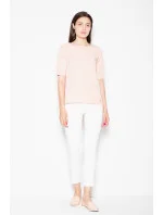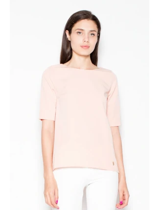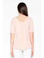 Elegantní halenka s krátkými rukávy a asymetrickým střihem. Na zádech má výřez, který krásně zvýrazňuje záda. Halenka se hodí k odpovídajícím kalhotám.