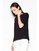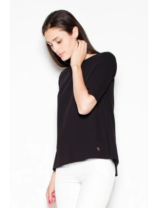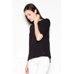 Elegantní halenka s krátkými rukávy a asymetrickým střihem. Na zádech má výřez, který krásně zvýrazňuje záda. Halenka se hodí k odpovídajícím kalhotám.