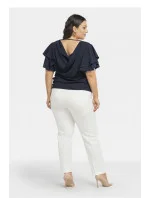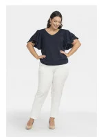 Asymetrická halenka plus size je každodenní kousek s jednoduchým, elegantním střihem, ideální pro každodenní nošení. Je vyrobena z bavlny s přídavkem elastanu, což zaručuje pohodlí a lehký střih. Prodloužený střih a 3/4 rukávy zajišťují volnost pohybu a pohodlí. Halenka má kulatý výstřih, který jí dodává klasický vzhled. Na přední straně je nápis zdobený kamínky, který dodává halence módní a originální charakter. Skvěle se hodí pro každodenní stylizaci, ať už do práce, nebo na běžné vycházky.