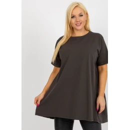 Prodloužený casual tričko, ideální na každodenní příležitosti. Vyrobeno z příjemné bavlny s přídavkem elastanu, díky čemu je měkké, elastické a pohodlné na nošení po celý den. Hladký vzor dělá tričko snadno kombinovatelné s mnoha stylizacemi. Model má kulatý výstřih a krátký rukáv, co mu dodává univerzální, uvolněný charakter. Chybějící zapínání zdůrazňuje jednoduchý, pohodlný střih. Další výhodou je volánka dole vzadu, která jemně oživuje střih a dodává mu ženské kouzlo. Ideální volba na každý den k džínům, legínám nebo sukni.