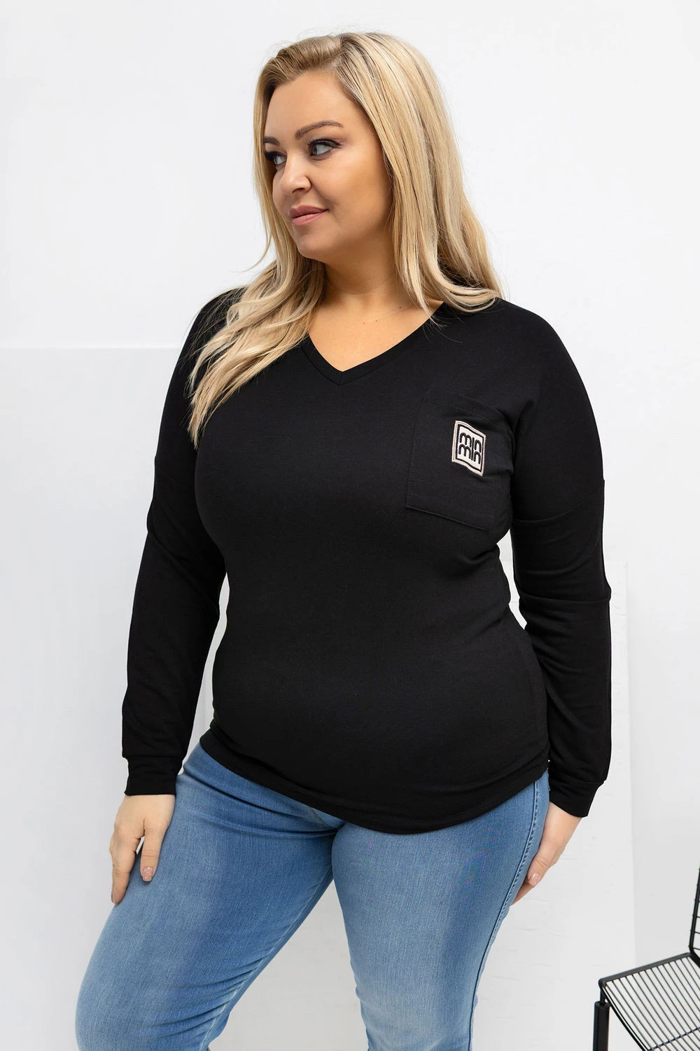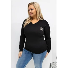 Košile ve velikosti plus o klasickém, každodenním charakteru je skvělou základnou pro mnoho stylizací. Hladký vzor jí dodává univerzálnost, díky čemuž ji lze snadno sladit jak s džínami, tak s látkovými kalhotami nebo legíny. Standardní délka zajistí, že se košile dobře drží na postavě a poskytuje pohodlí po celý den. Model je vyroben z velmi měkkého micro modalu s přídavkem elastanu, který je příjemný na dotek, prodyšný a elastický. Dlouhý rukáv a výstřih do V jemně zdůrazňují krk a dekolt, přidávají lehkost celku. Košile nemá zapínání, což zvyšuje pohodlí při nošení. Stylovým akcentem je kapsa v oblasti hrudníku zdobená dekorativní nášivkou, která prolomuje jednoduchý tvar a dodává košili moderní charakter.