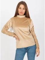 Béžová velurová halenka s volánkovými rukávy značky RUE PARIS .