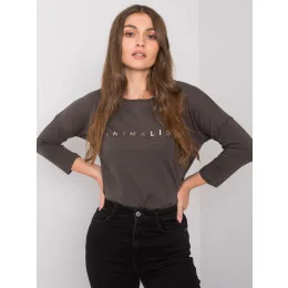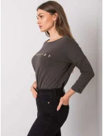 Dámská halenka tmavě khaki barvy s nápisy.