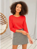 Halenka Red April. Tato halenka z hladkého bavlněného úpletu v červené barvě je pro všechny milovníky základního stylu. Oblečení bez vzoru vždy spolehlivě funguje, pokud jde o pohodlný každodenní styling. Hodí se k mnoha dalším kouskům oblečení, protože jsou univerzální a nadčasové, takže nikdy nevyjdou z módy. Doporučená halenka s 3/4 rukávy jistě osvěží váš šatník a budete po ní sahat velmi často. Tento model má volnější střih a ženský výstřih, takže navzdory rovnému střihu vypadá na siluetě velmi atraktivně. Halenka je vyrobena z vysoce kvalitní směsové tkaniny, která je vysoce prodyšná a příjemná na dotek. Dámská základní halenka vytvoří dokonalou dvojici s našimi džínovými nebo látkovými kalhotami a elegantními sukněmi.