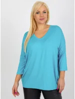 Modrá plus size základní halenka s výstřihem do V .