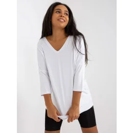 Bílá halenka plus size pro každodenní nošení s výstřihem do V .