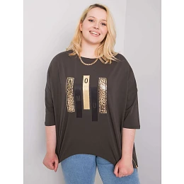 Dámská halenka s potiskem v tmavě khaki barvě.