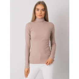 RUE PARIS Tmavě béžový žebrovaný rolák pro ženy.