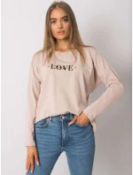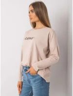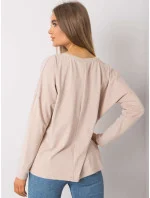 RUE PARIS Světle béžové bavlněné dámské tričko s dlouhým rukávem.