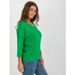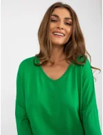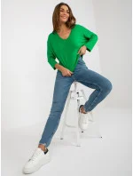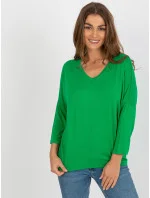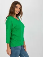 Zelená dámská základní halenka s výstřihem do V .