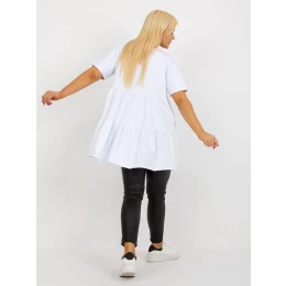 Rozměry halenky v jedné velikosti měřené na plocho: šířka v podpaží - 62 cm, celková délka - 83 cm.