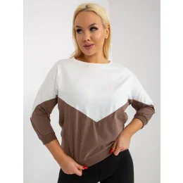 Ecru hnědá plus size základní halenka s 3/4 rukávy .