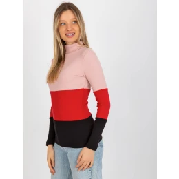 Světle růžová a černá základní halenka s žebrovaným rolákem .