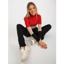 Červeno-černá základní halenka s žebrovaným rolákem .